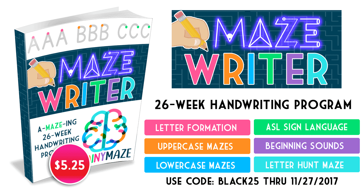 A to Z handwriting pages filled with Super Fun Mazes! With fun and challenging mazes on every page, Maze Writer is NOT your standard handwriting curriculum. Eight challenging mazes for every letter of the alphabet! 200+ Pages CLICK HERE |